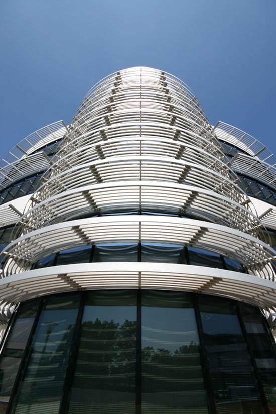 - Разработка и изменение типа и угла наклона ламелей. Такое проектирование солнцезащиты зданий позволяет сделать рассеивание света оптимальным для каждого конкретного случая без применения каких-либо дополнительных средств и конструкций.