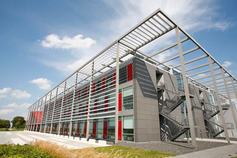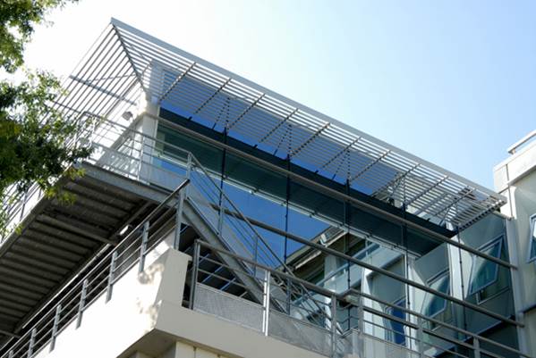 - Мы предлагаем также солнцезащитные панели от производителя любого размера и геометрии. Ими может быть отделан фасад целиком или отдельные его участки, находящиеся на наиболее освещаемых местах. Их использование существенно увеличивает срок эксплуатации здания и комфортность нахождения в нем.